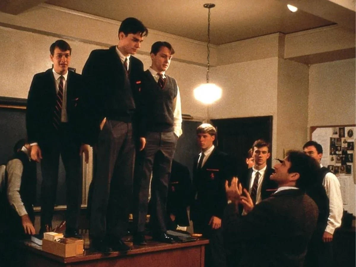 MOVIE REFERENCE - Dead Poets Society" (1989) is a coming-of-age drama set in 1959 at Welton Academy, an elite New England boarding school. The film centers around an English teacher, John Keating (played by Robin Williams), who inspires his students to break free from conformity and embrace individuality, particularly through poetry